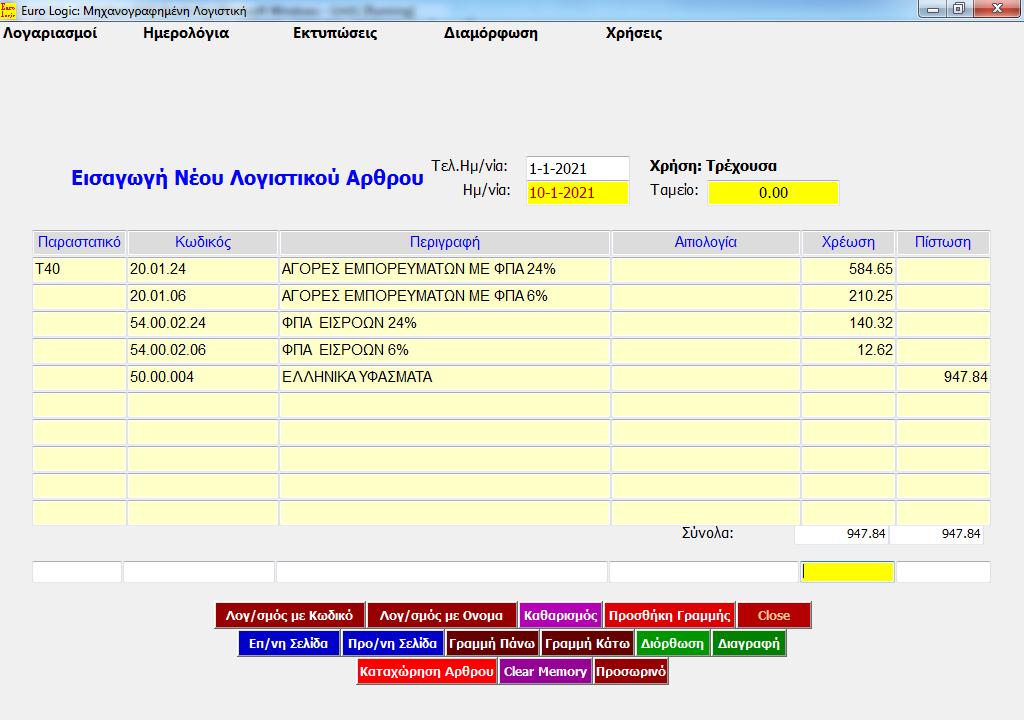 Βλέπουμε μία εικόνα, από το πρόγραμμα της Μηχ/νης Λογιστικής.